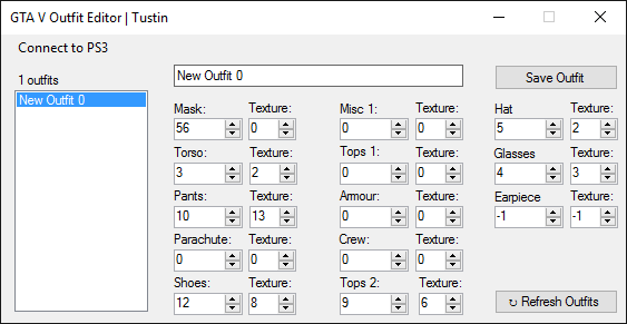 This outfit editor allows you to modify your saved outfits on GTA V.
